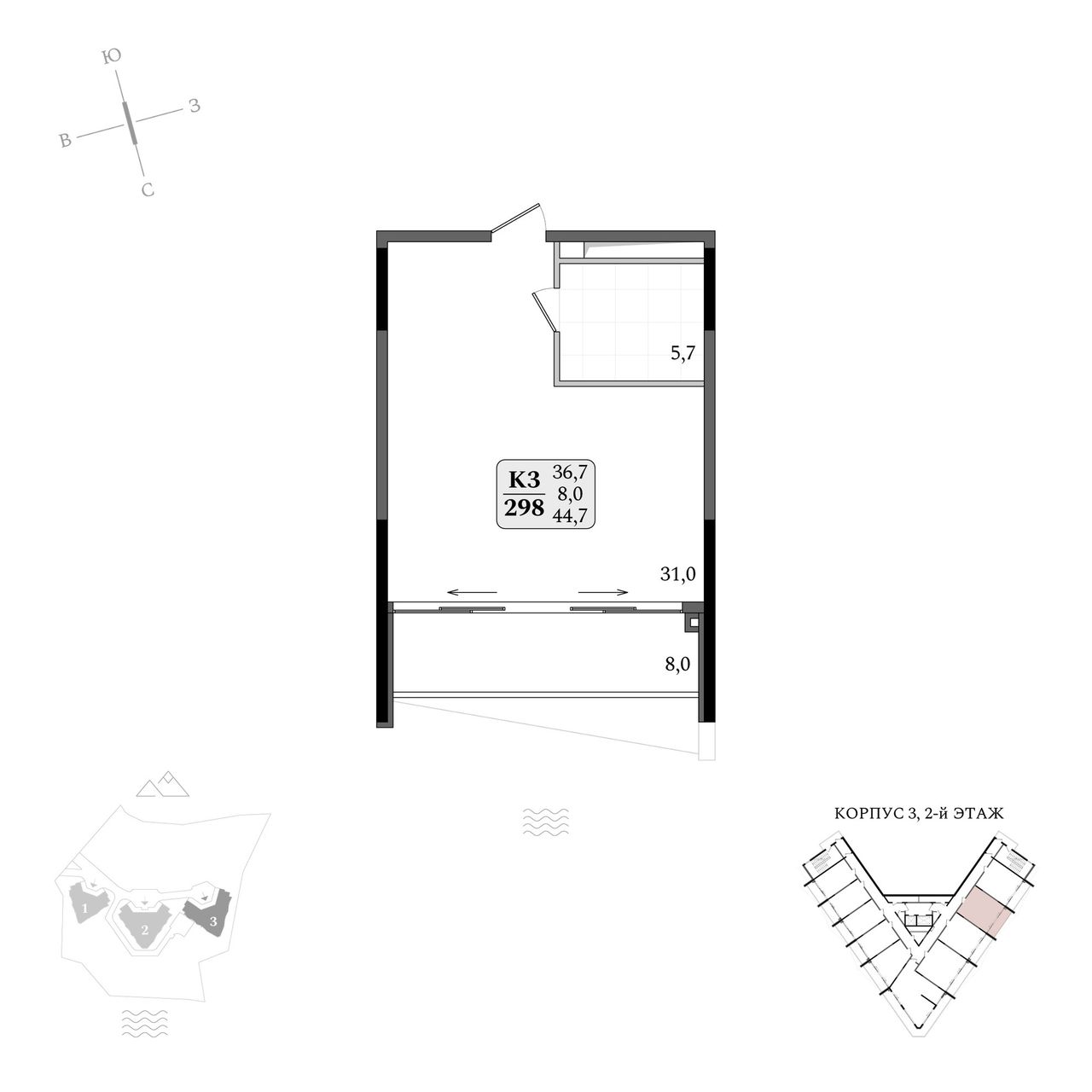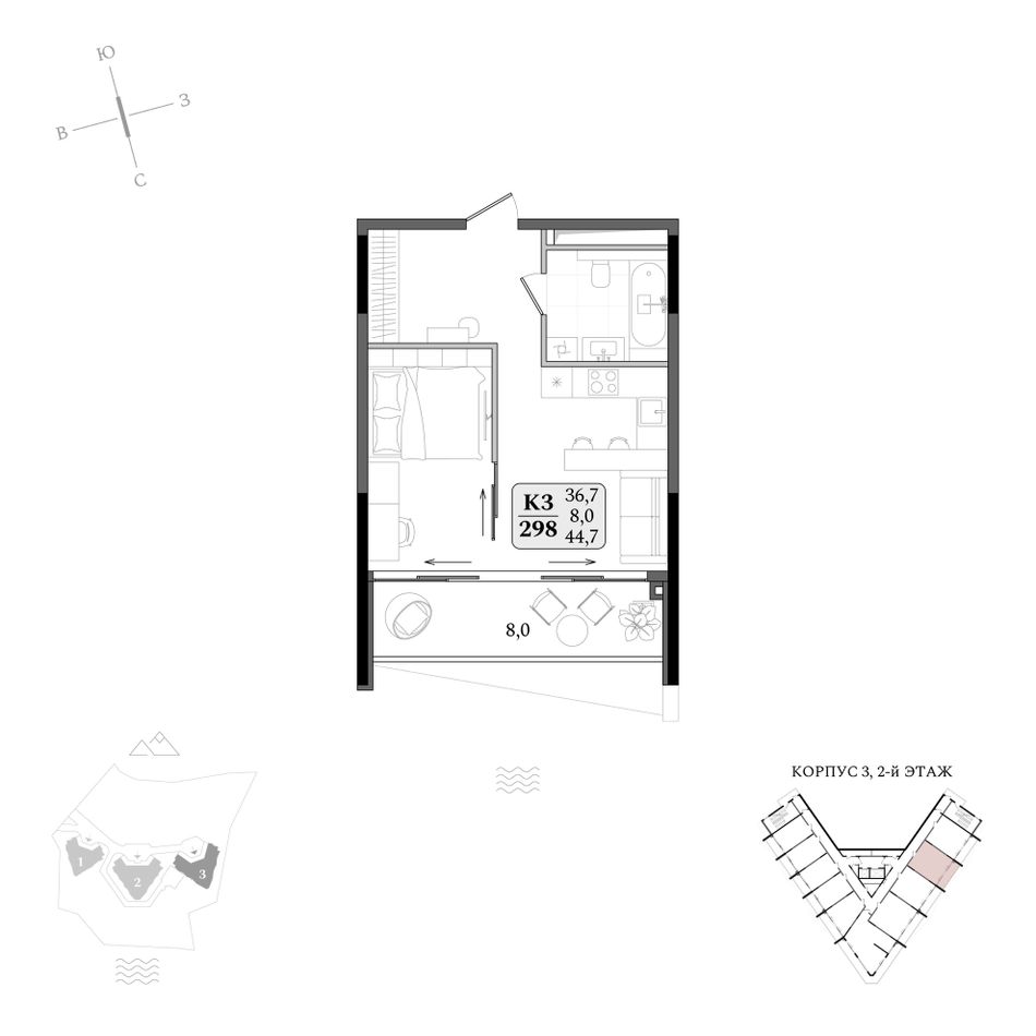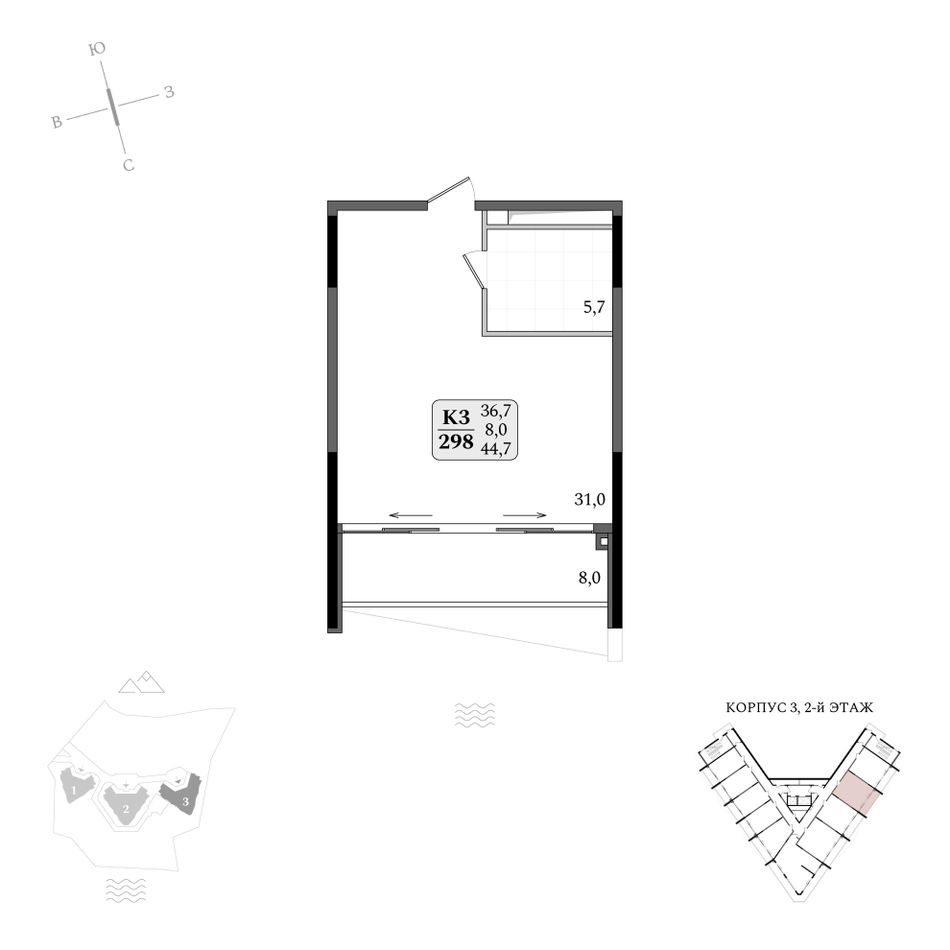 Продаются апартаменты № 3/298 площадью 44,7 м2