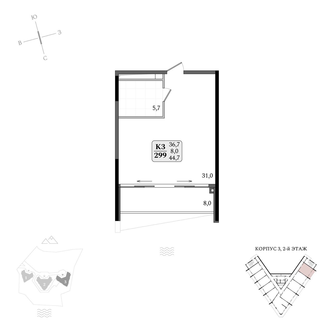 Продаются апартаменты № 3/299 площадью 44,7 м2