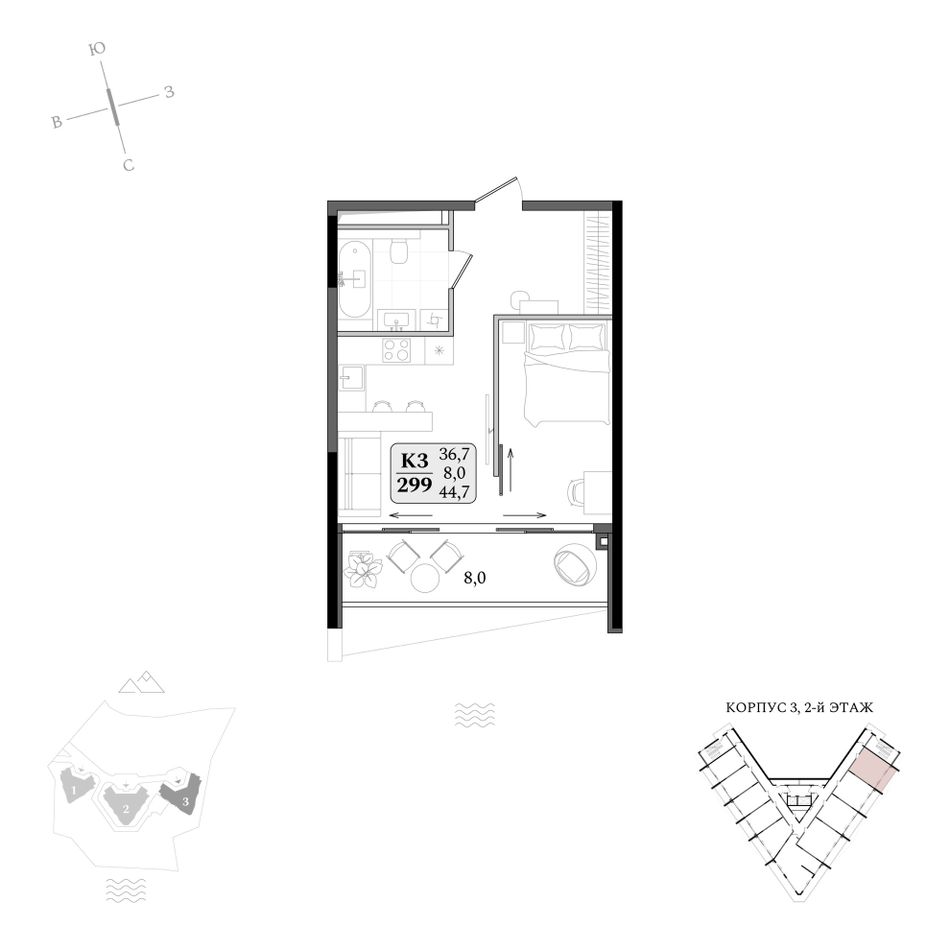 Студия — 44,7 м² 2/14 эт. в LETTO (Летто)