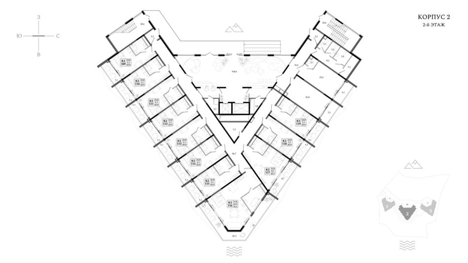 В комплексе представлена широкая линейка планировочных решений от студий до двухуровневых пентхаусов на последних этажах.
