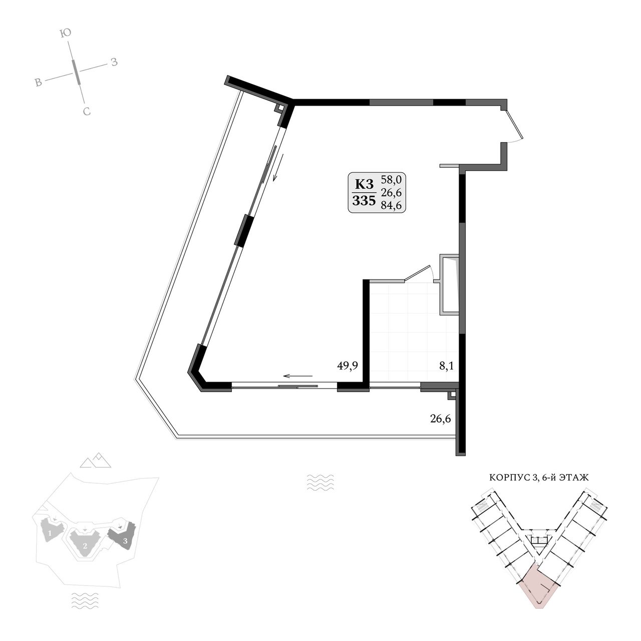 Продаются апартаменты № 3/335 площадью 84,6 м2