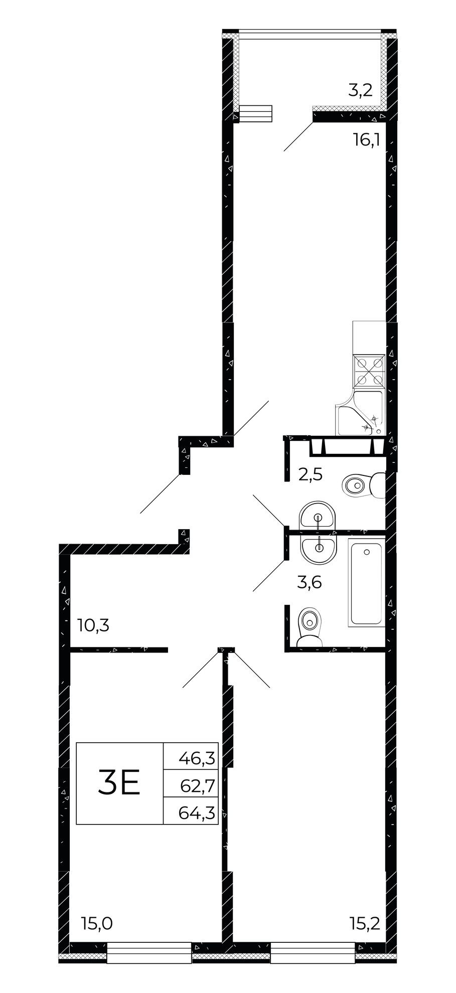 Общая площадь64,3 м²