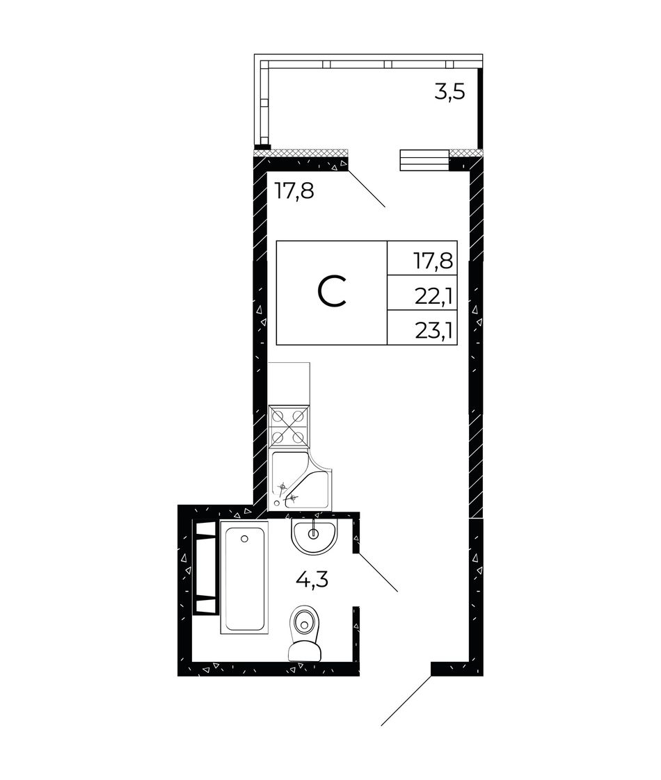 | Студия | 23 - 24 м² | 3,8 - 4,6 млн ₽ |