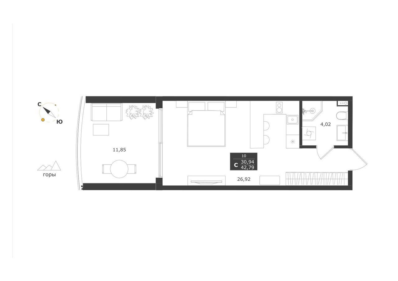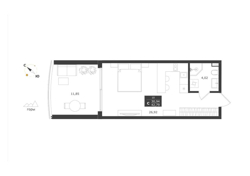 Студия — 42,79 м² 3/11 эт. в Паруса мечты