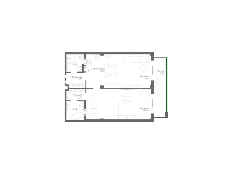 2-комнатная — 85,22 м² 3/12 эт. в Park Plaza (Парк Плаза)
