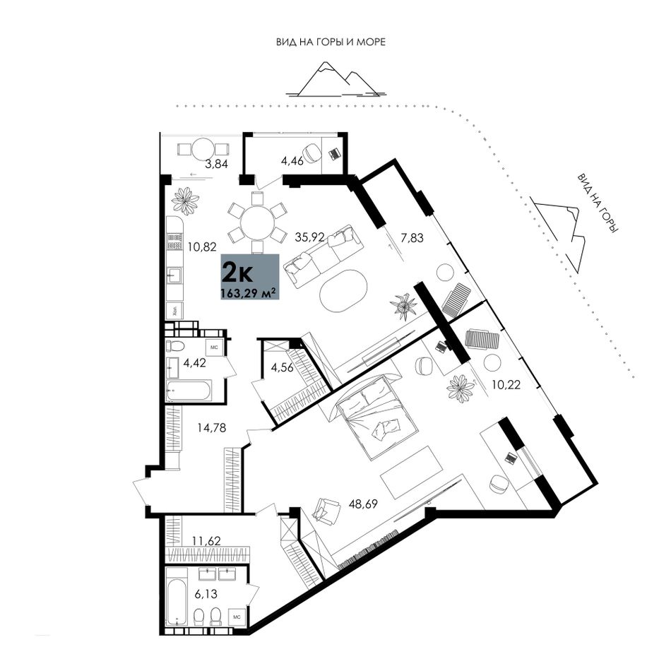 — Широкоформатные апартаменты, для тех, кто ценит простор и комфорт;