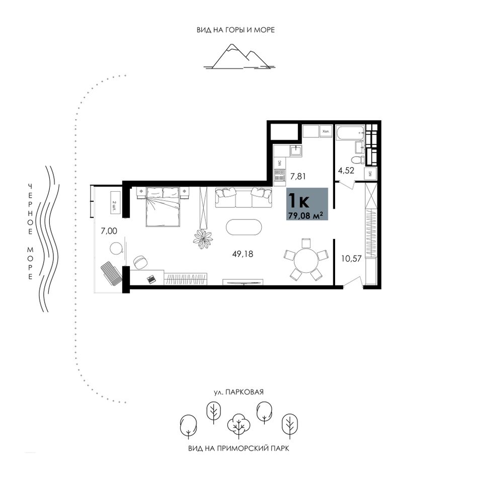 1-комнатная — 79,08 м² 9/12 эт. в Park Plaza (Парк Плаза)