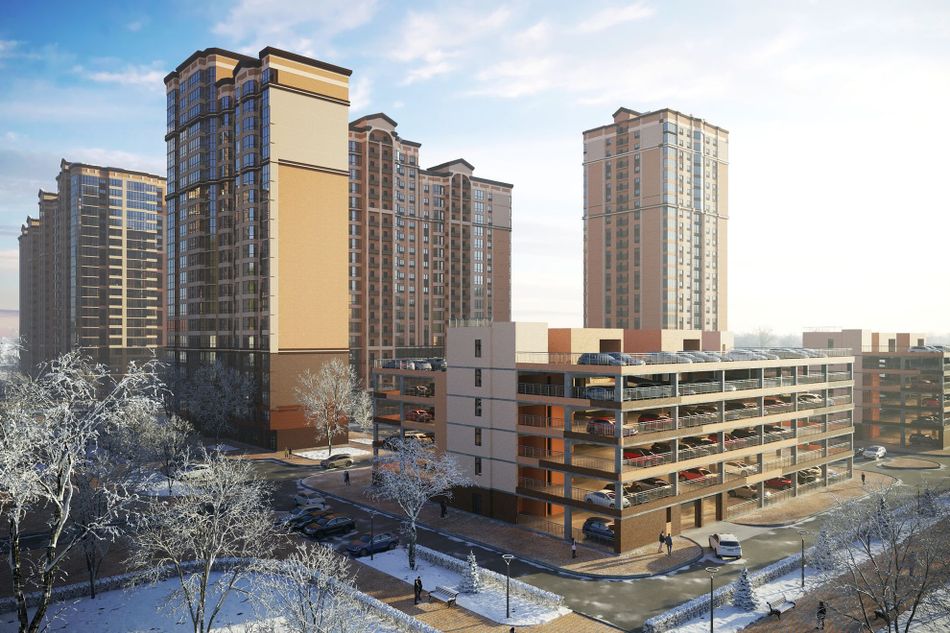 Европейский стиль фасадов, три детских сада, школа, подземные и наземные многоуровневые паркинги на территории ЖК «Достояние».