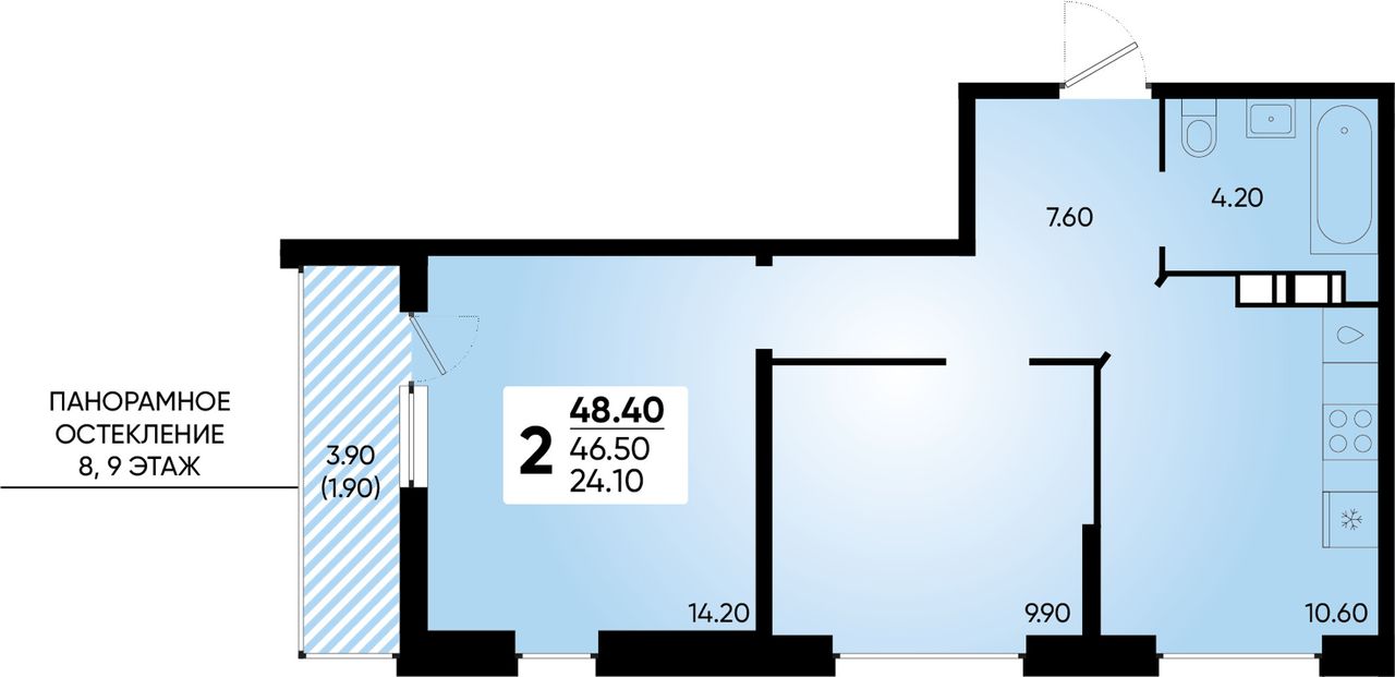 2-комнатная — 48,4 м² 7/18 эт. в Архитектор