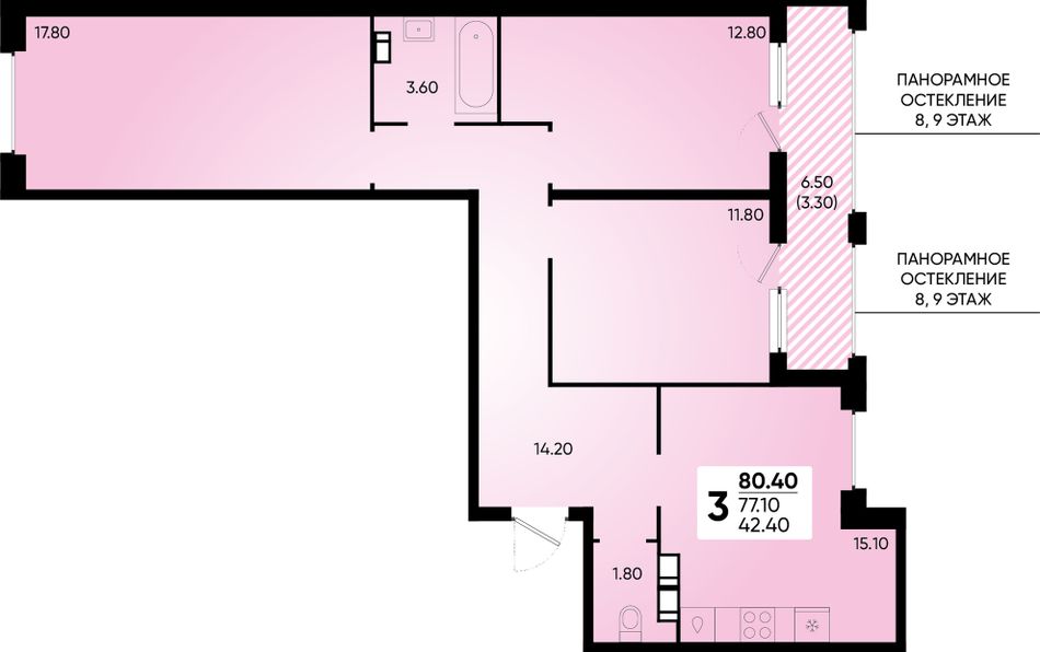 3-комнатная — 80,4 м² 8/18 эт. в Архитектор