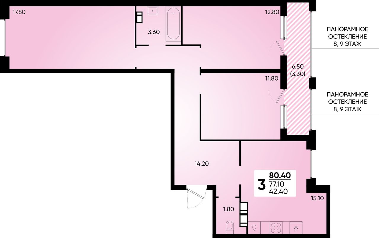 3-комнатная — 80,4 м² 9/18 эт. в Архитектор