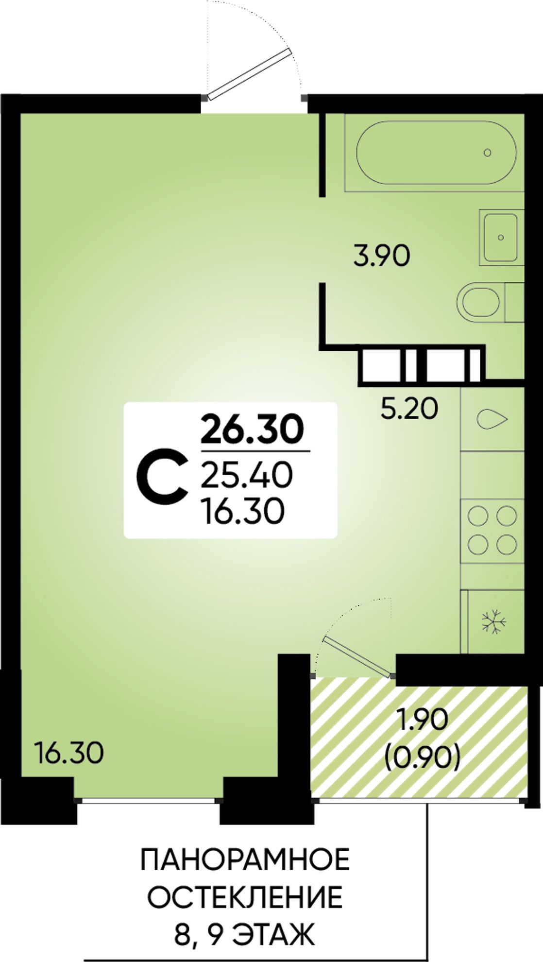 Общая площадь26,3 м²