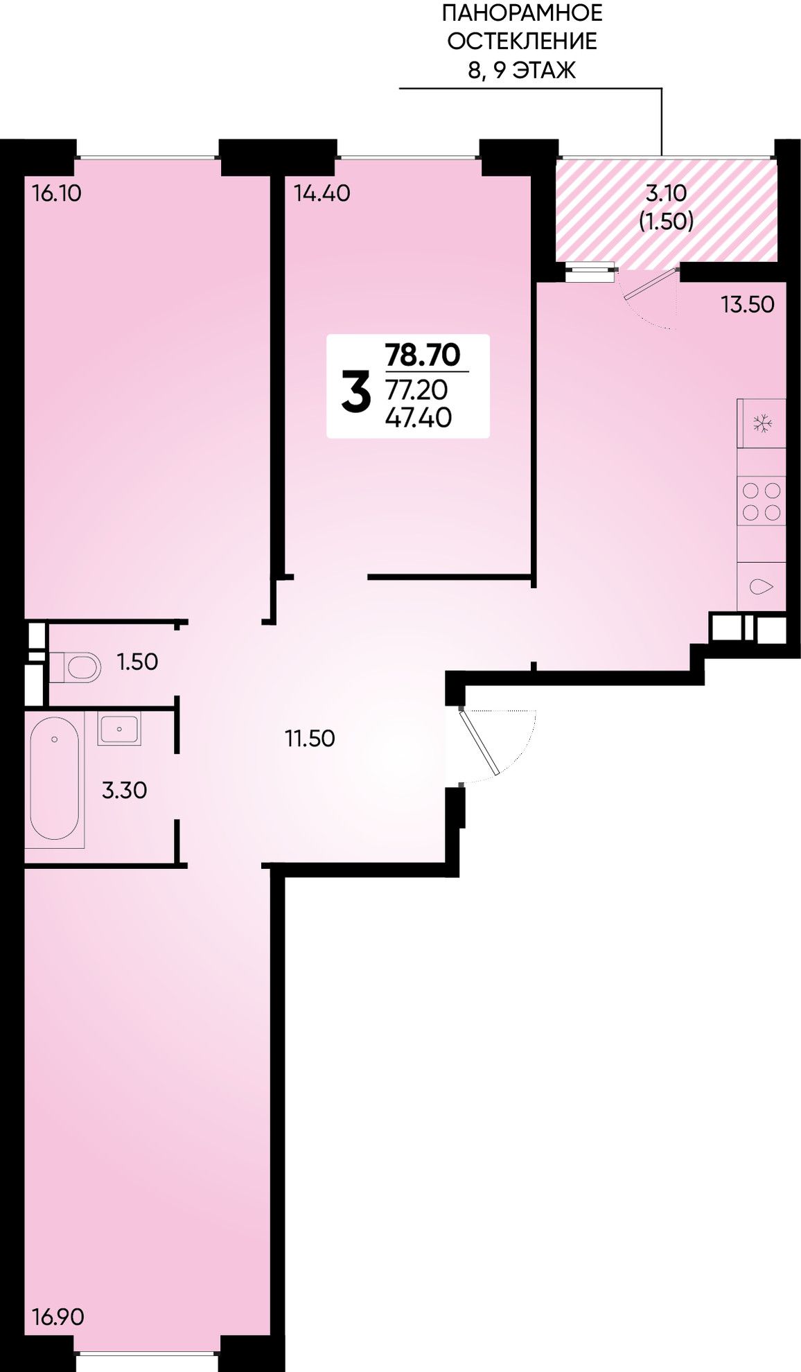 Общая площадь78,7 м²