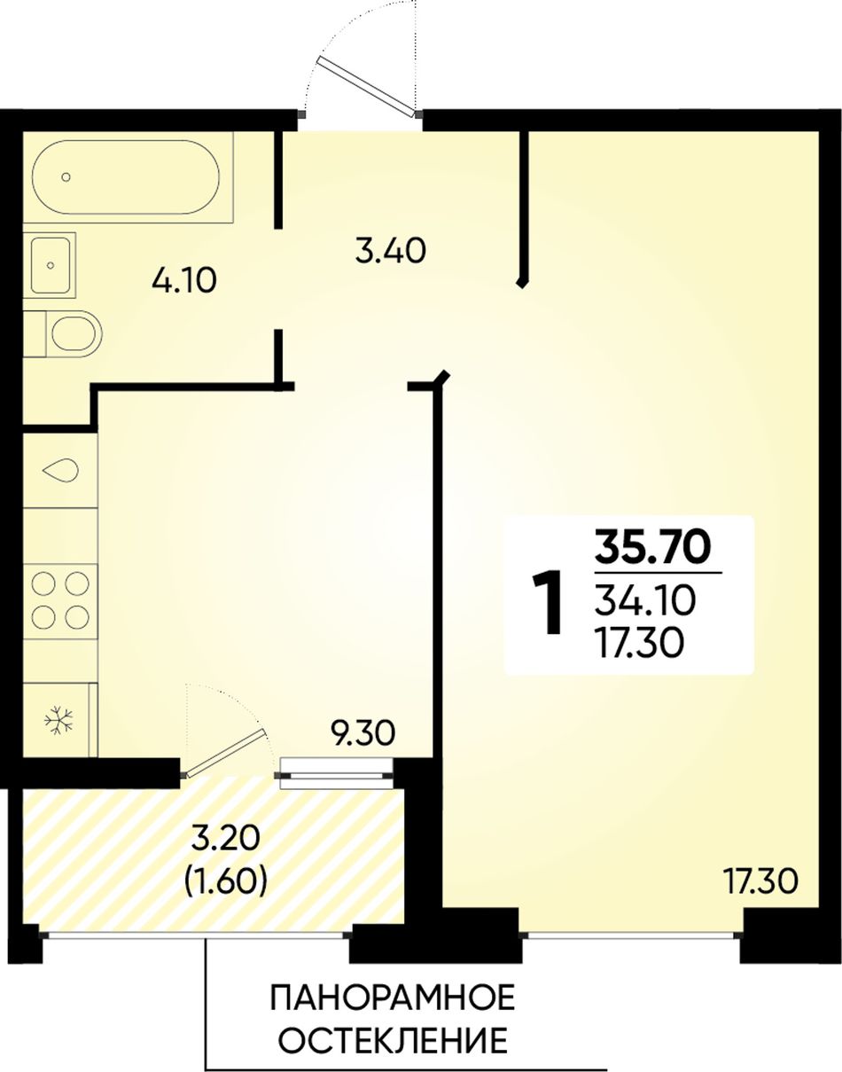 1-комнатная — 35,7 м² 2/18 эт. в Архитектор