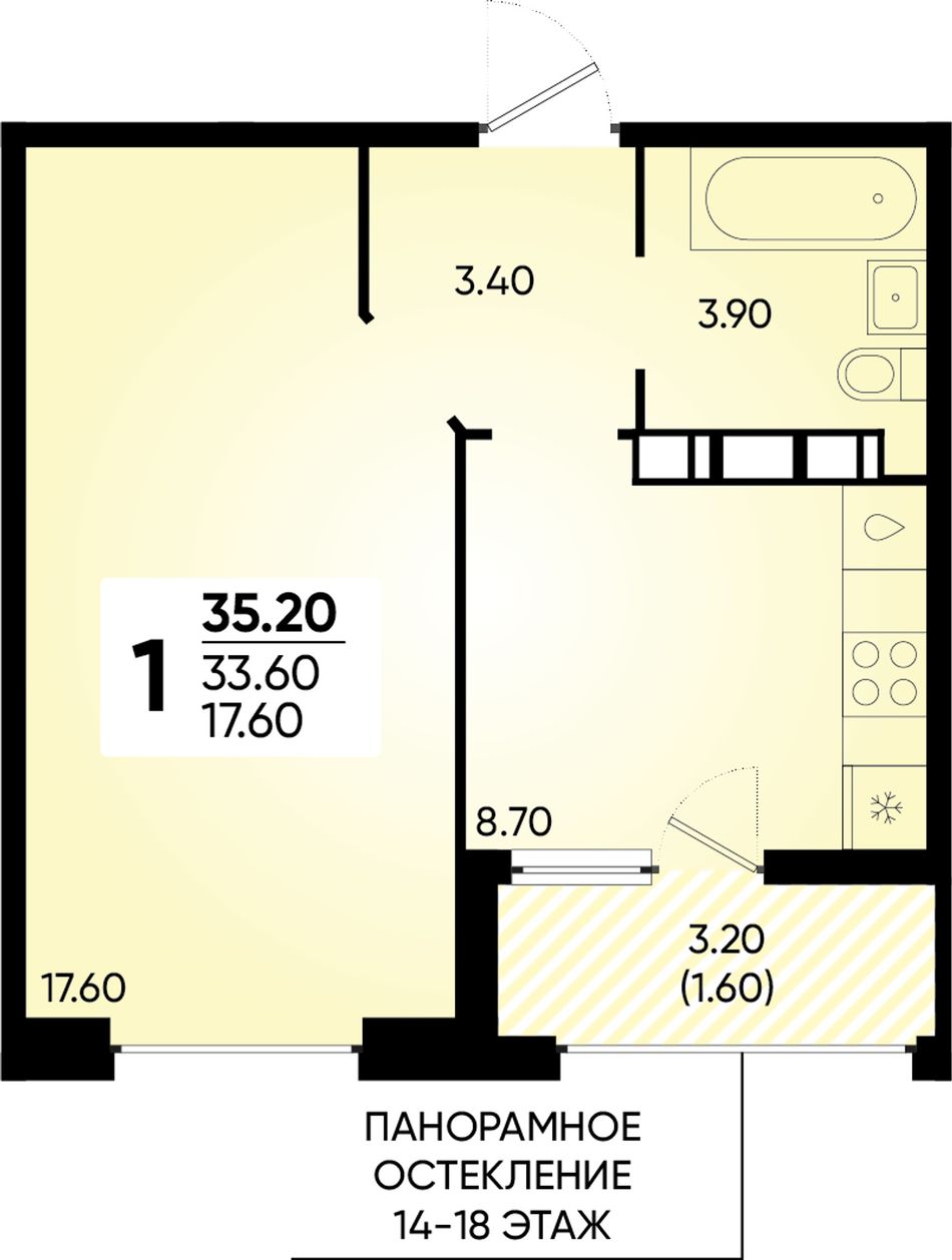 1-комнатная — 35,2 м² 13/18 эт. в Архитектор