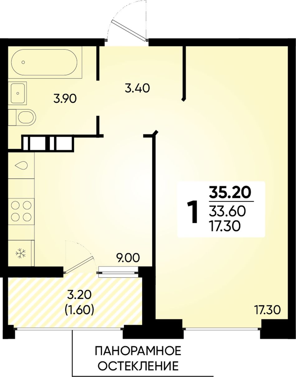 1-комнатная — 35,2 м² 12/18 эт. в Архитектор