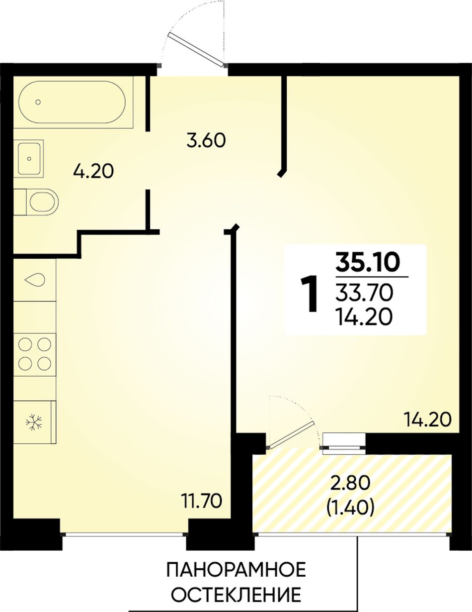 1-комнатная — 35,1 м² 2/18 эт. в Архитектор