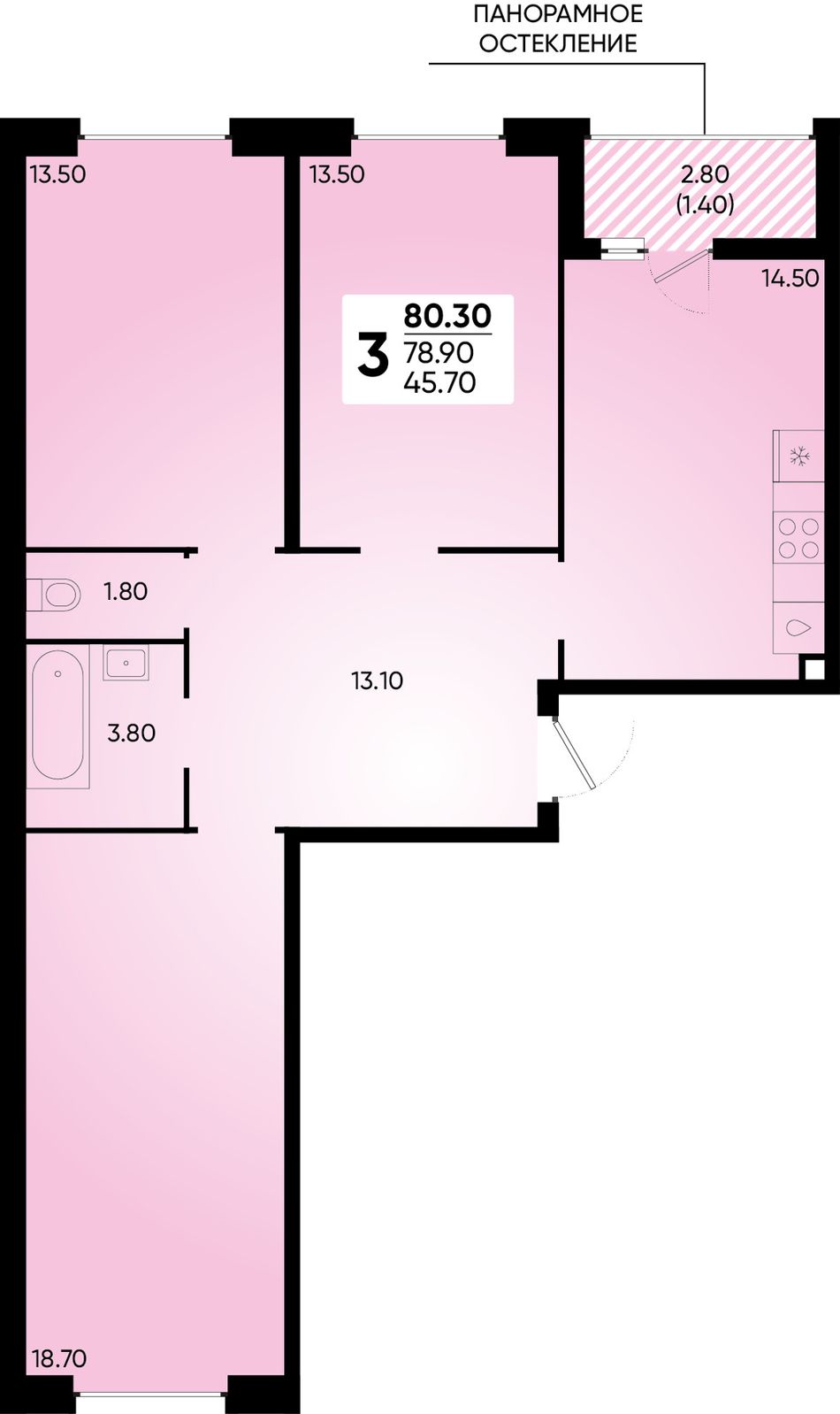 3-комнатная — 80,3 м² 2/18 эт. в Архитектор