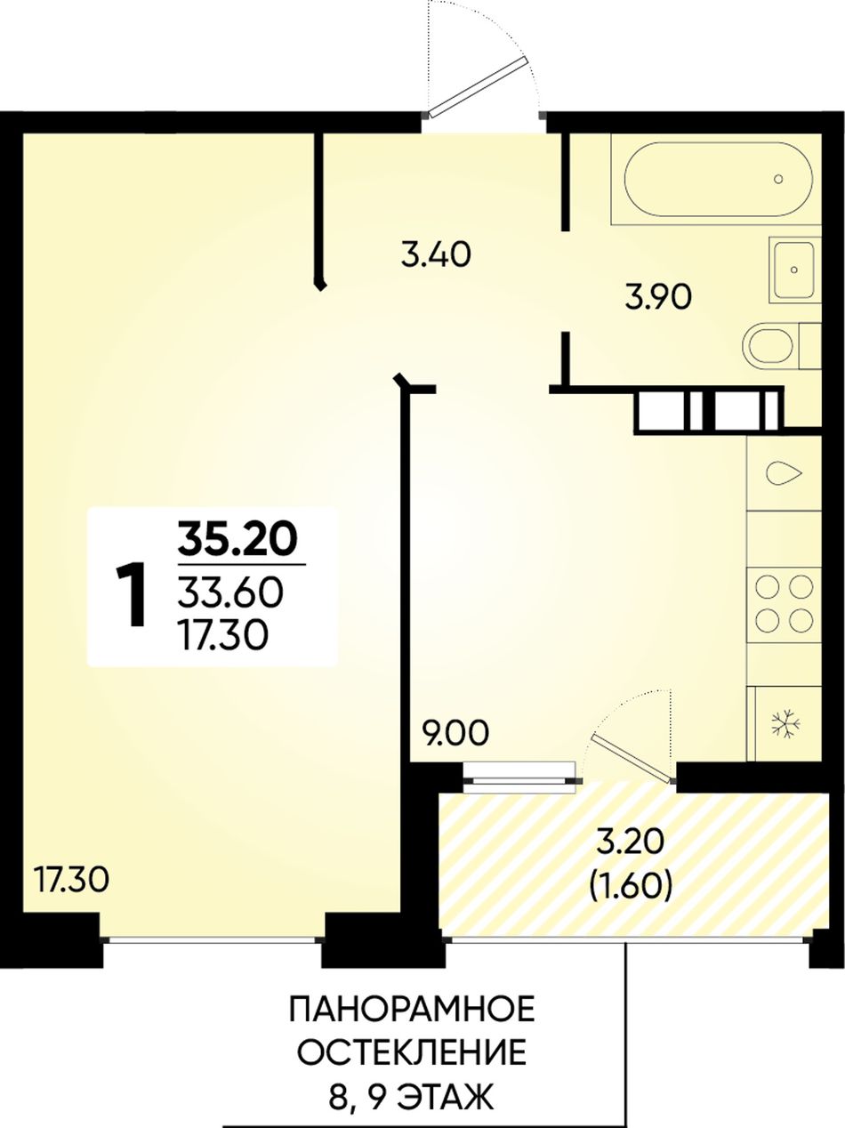1-комнатная — 35,2 м² 3/18 эт. в Архитектор