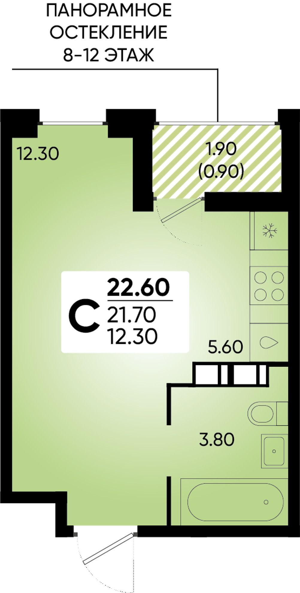 Общая площадь22,6 м²