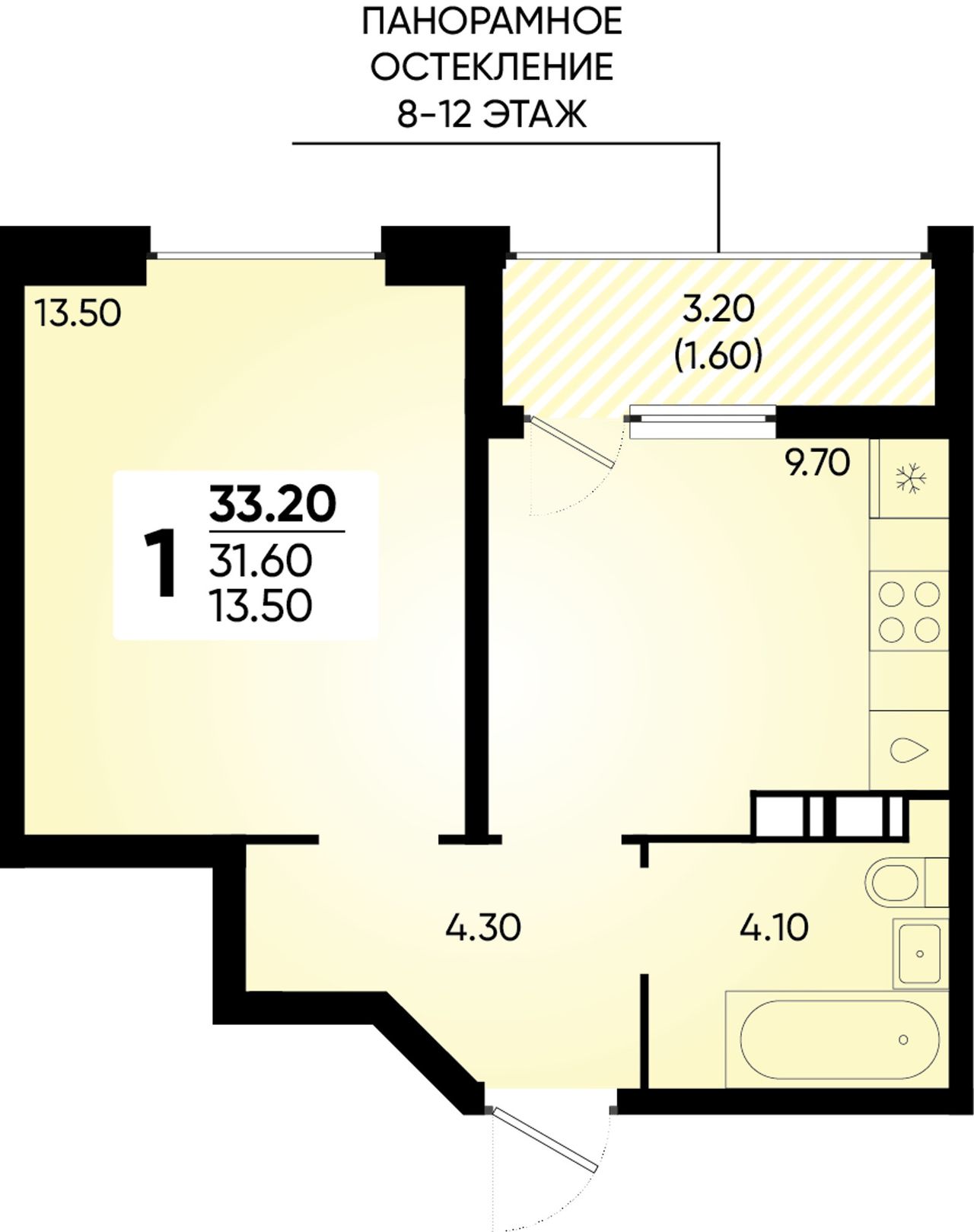 1-комнатная — 33,2 м² 8/18 эт. в Архитектор