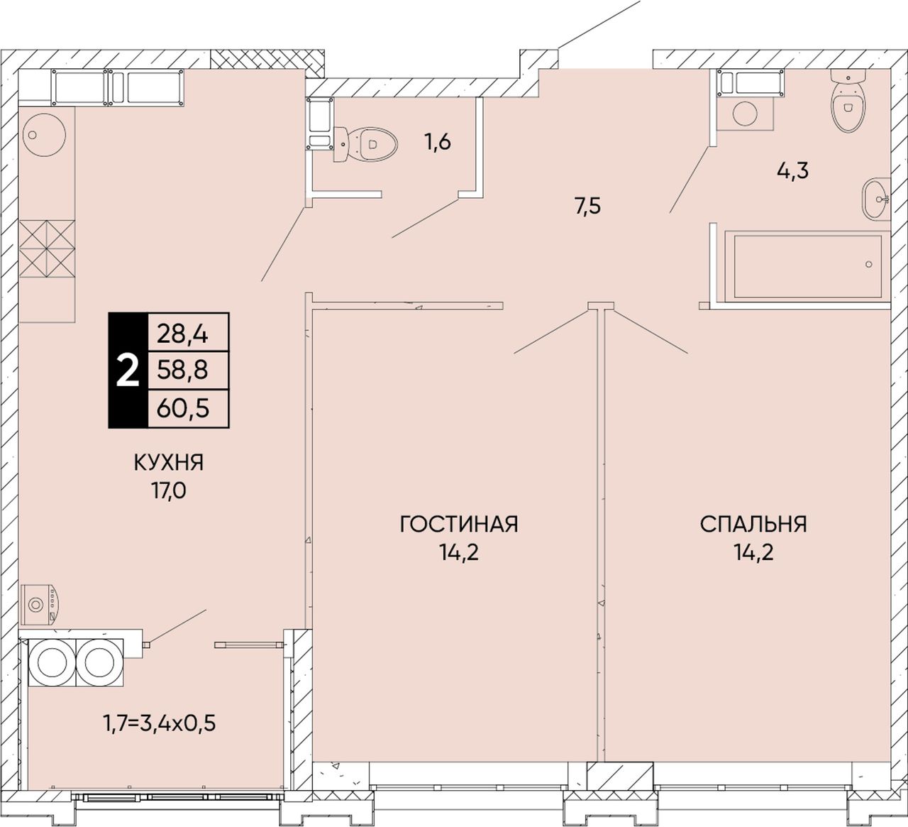 2-комнатная — 60,5 м² 22/24 эт. в Левобережье