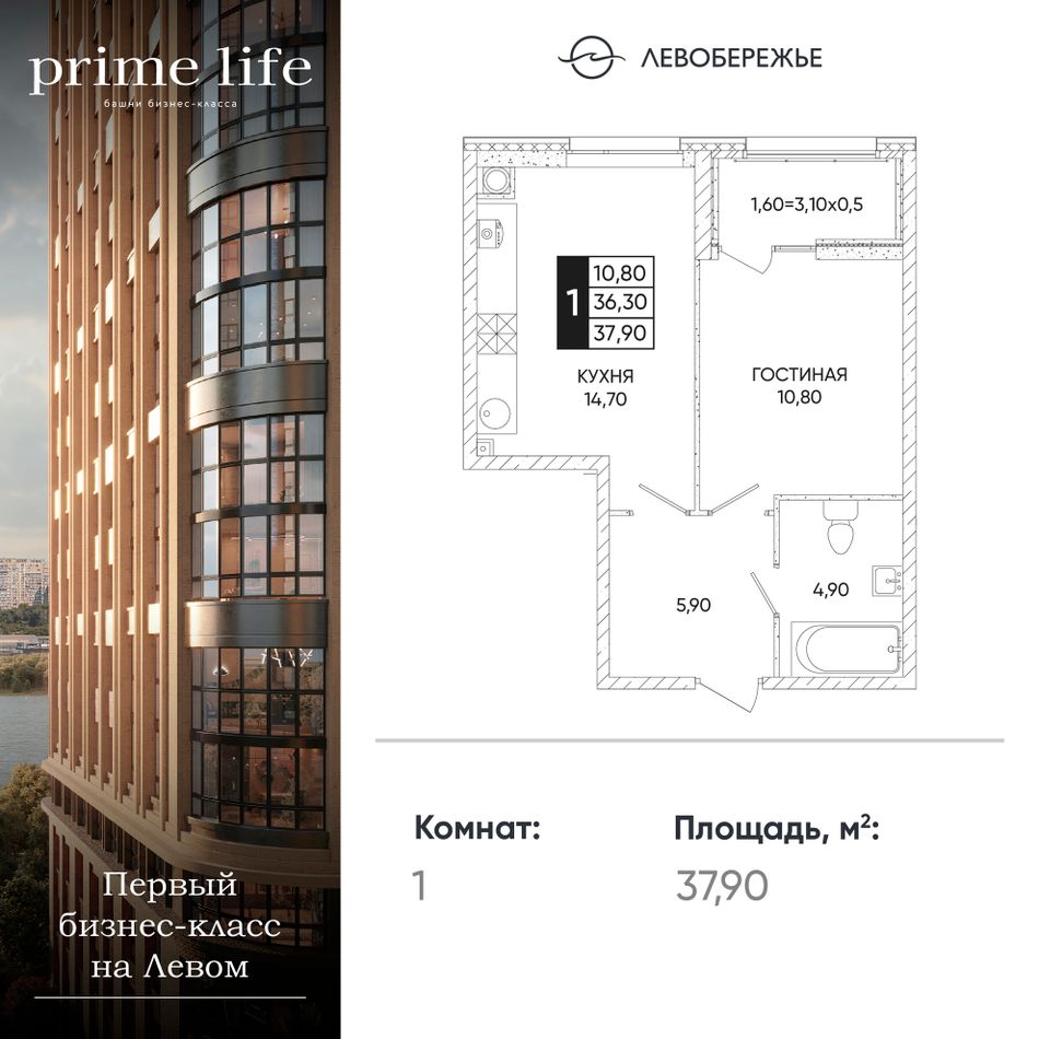 1-комнатная — 37,9 м² 1/24 эт. в Левобережье