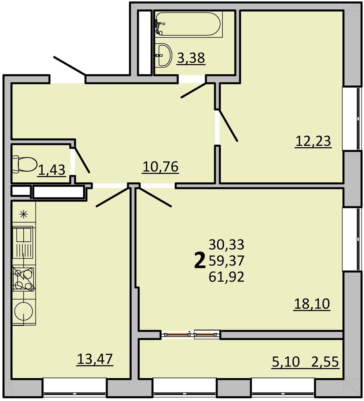2-комн. | 52 - 59 м² | 7,2 - 8,1 млн ₽ |