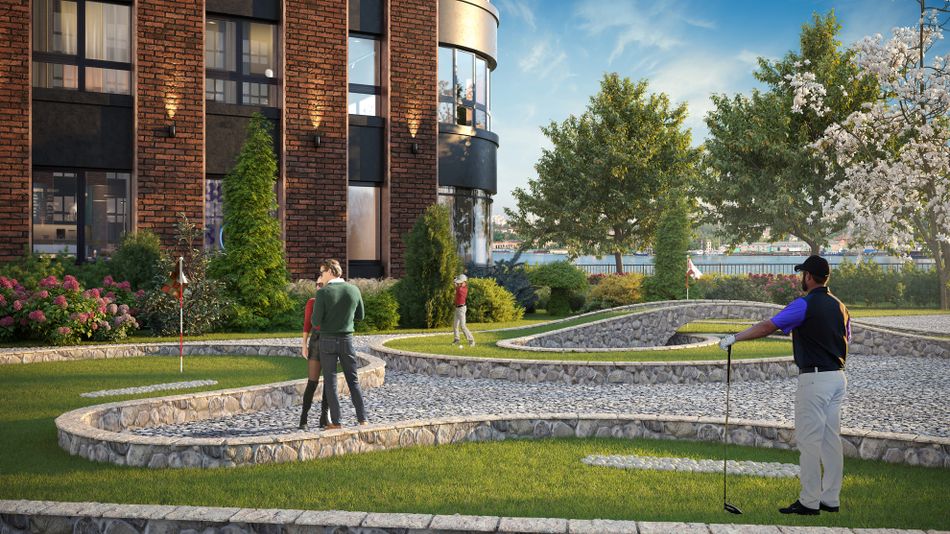 Двор Prime Life II впечатляет. Яркие детские площадки, спортивные площадки, зона воркаут. Для резидентов Prime Life II рядом с домом размещена площадка для мини-гольфа. Игра в гольф — исторически развлечение для членов привилегированного клуба. В Prime Life II вы ощутите себя его частью.