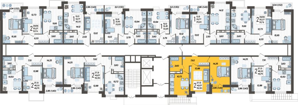 2-комнатная — 50,5 м² 5/16 эт. в Смородина
