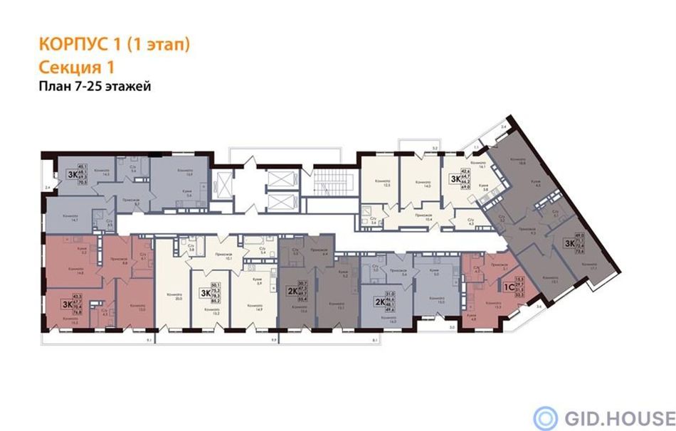 | 3-комн. | 74 - 94 м² | 10,5 - 13,9 млн ₽ |