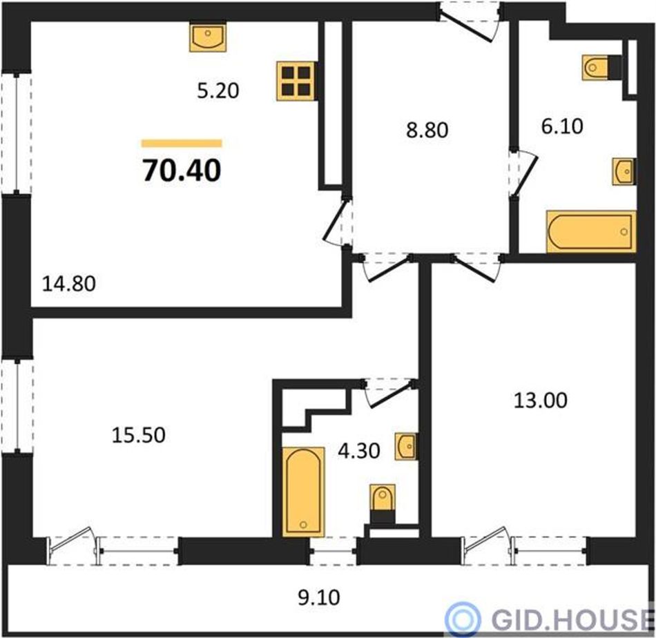 2-комнатная — 70,4 м² 15/25 эт. в Академия