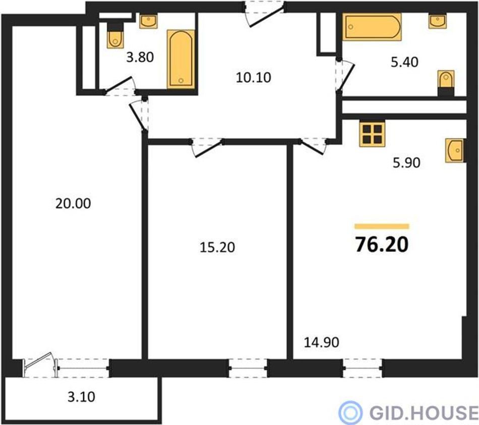 Квартира: 2 к 76,20 кв.м., 6 этаж в комплексе Academia, 1 очередь, корп.1 (1 этап), сдача: 2кв. , этажей: 25, адрес Ростов-на-Дону г., Стачки пр., д. 196, Застройщик: АльфаСтройИнвест.