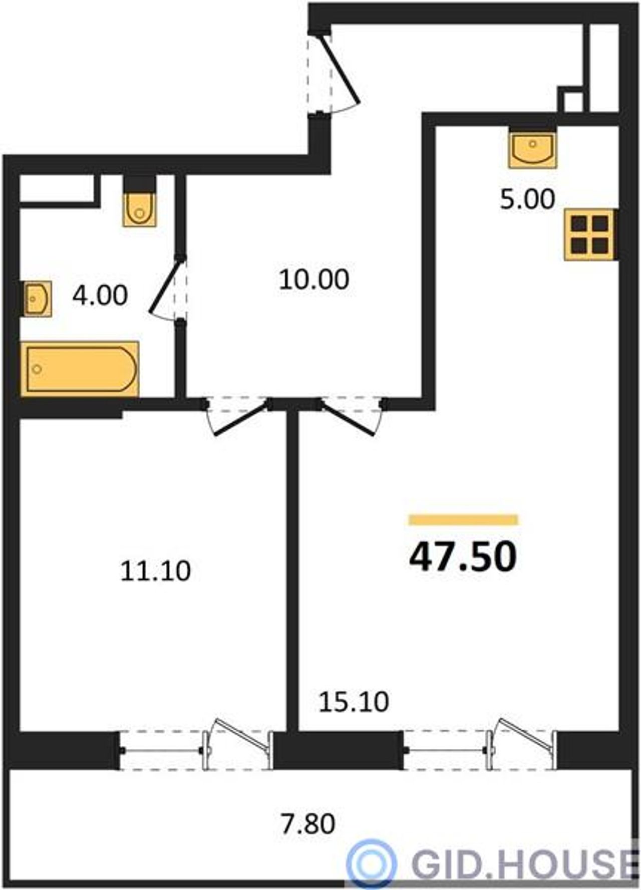 Общая площадь47,5 м²