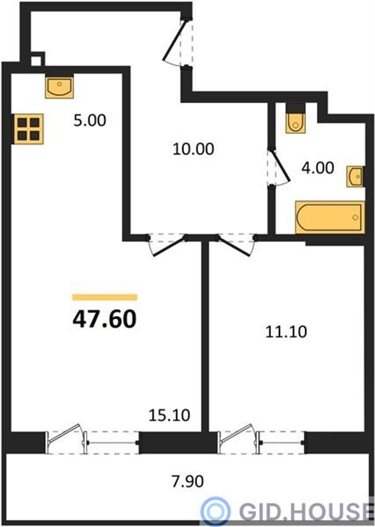 1-комнатная — 47,6 м² 6/25 эт. в ACADEMIA (АКАДЕМИЯ)
