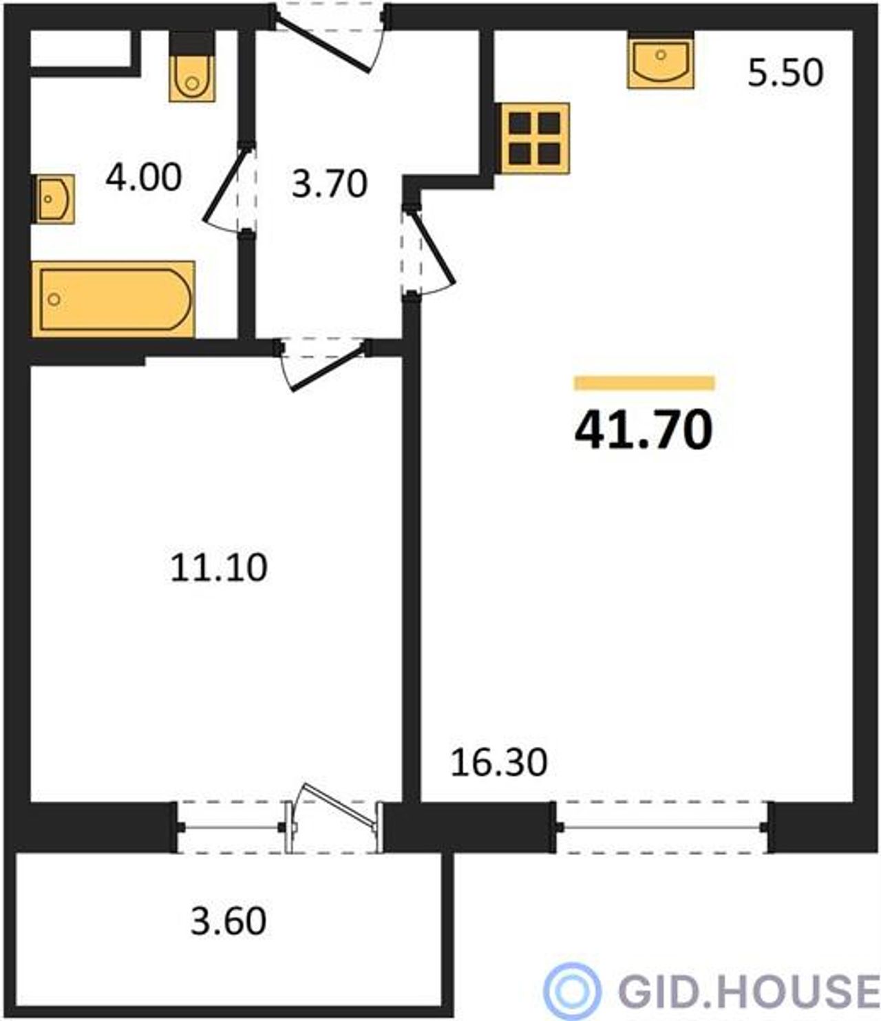 1-комнатная — 41,7 м² 2/25 эт. в ACADEMIA (АКАДЕМИЯ)