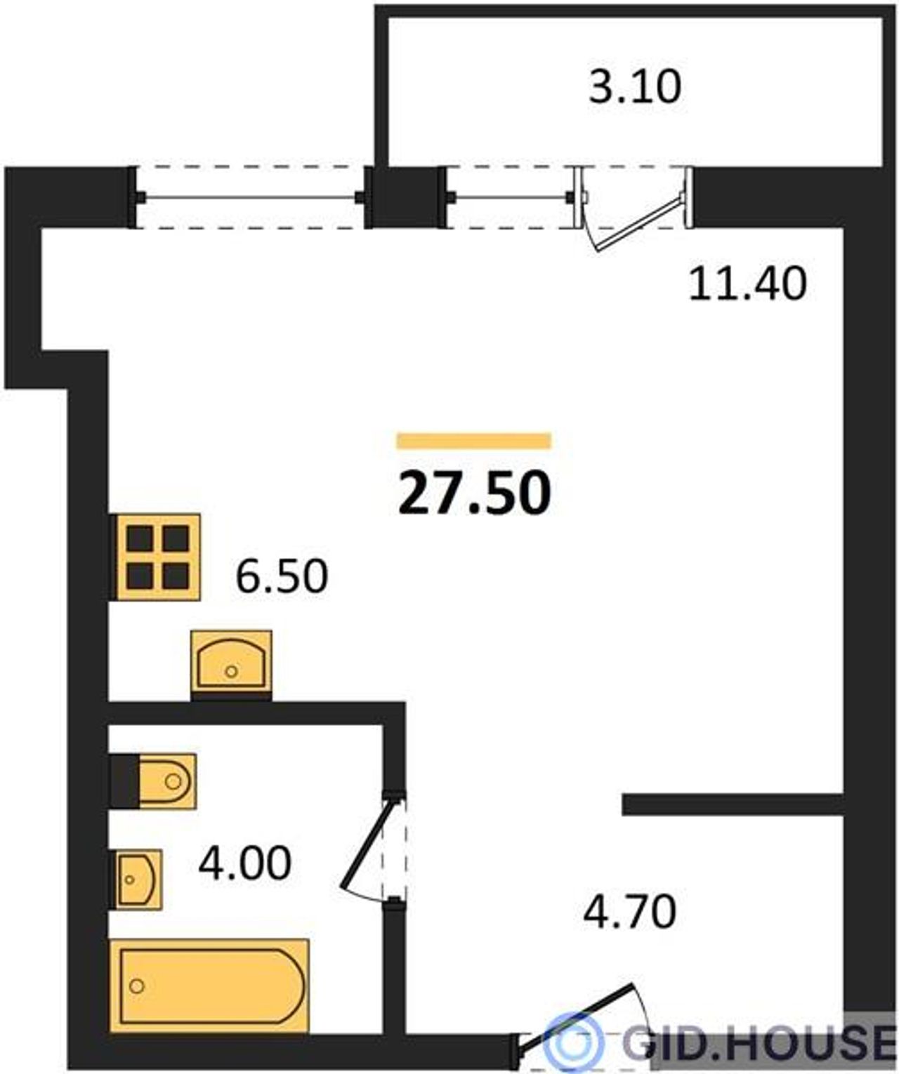 Общая площадь27,5 м²