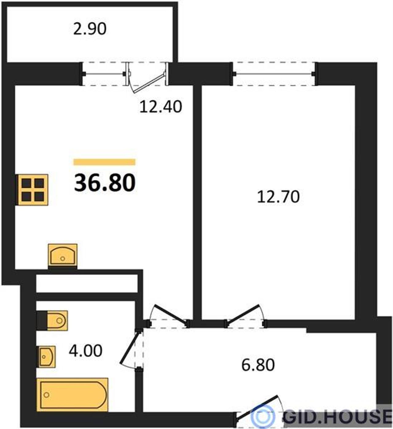 1-комнатная — 36,8 м² 11/25 эт. в ACADEMIA (АКАДЕМИЯ)