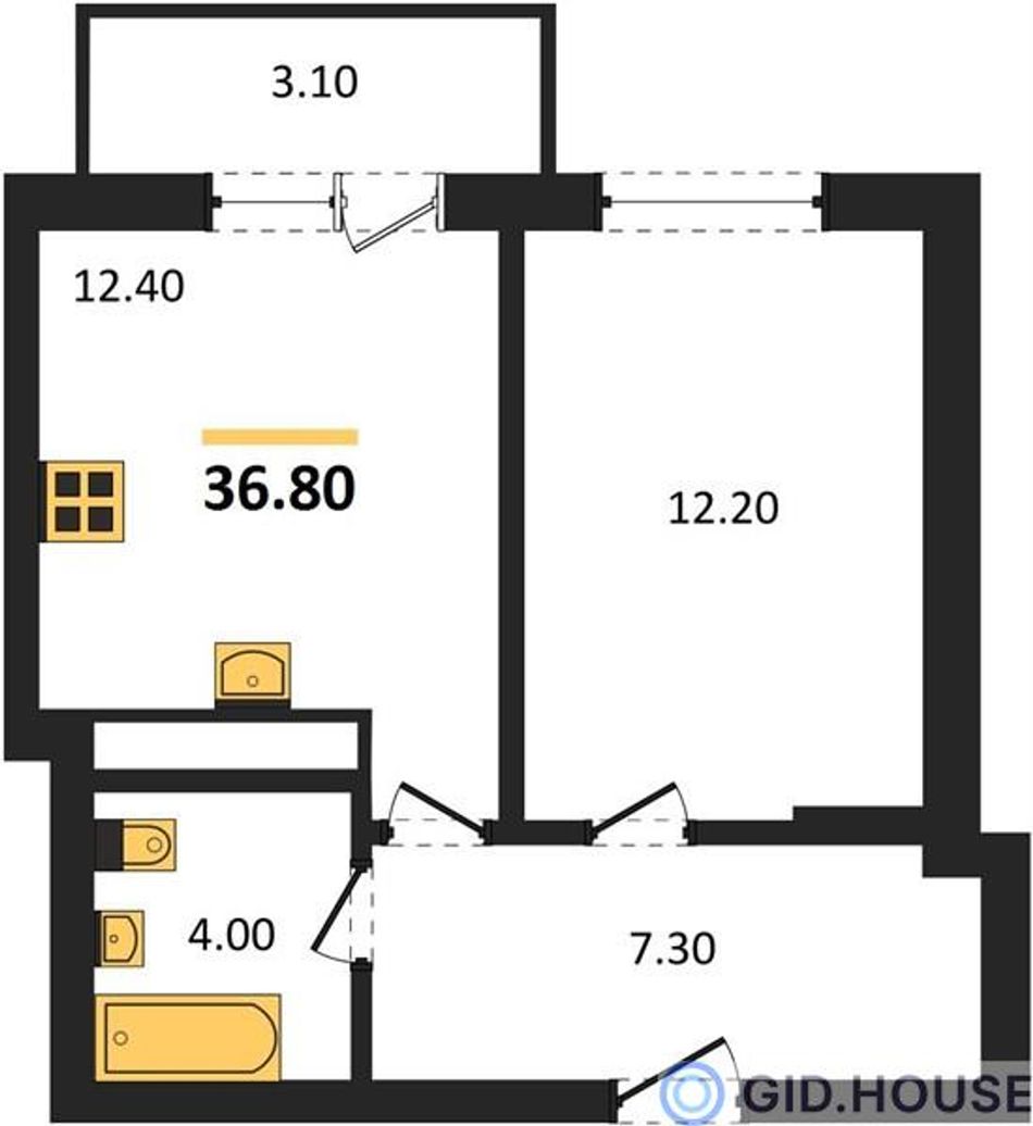 1-комнатная — 36,8 м² 6/25 эт. в ACADEMIA (АКАДЕМИЯ)