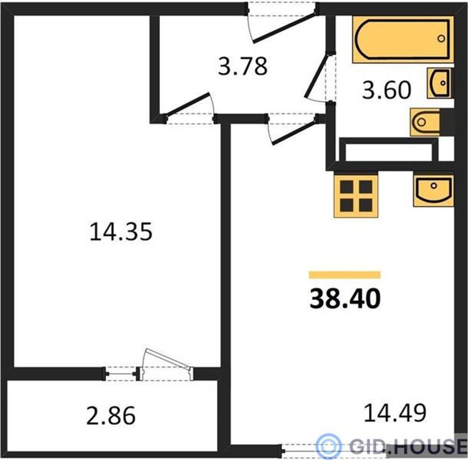 Общая площадь38,4 м²