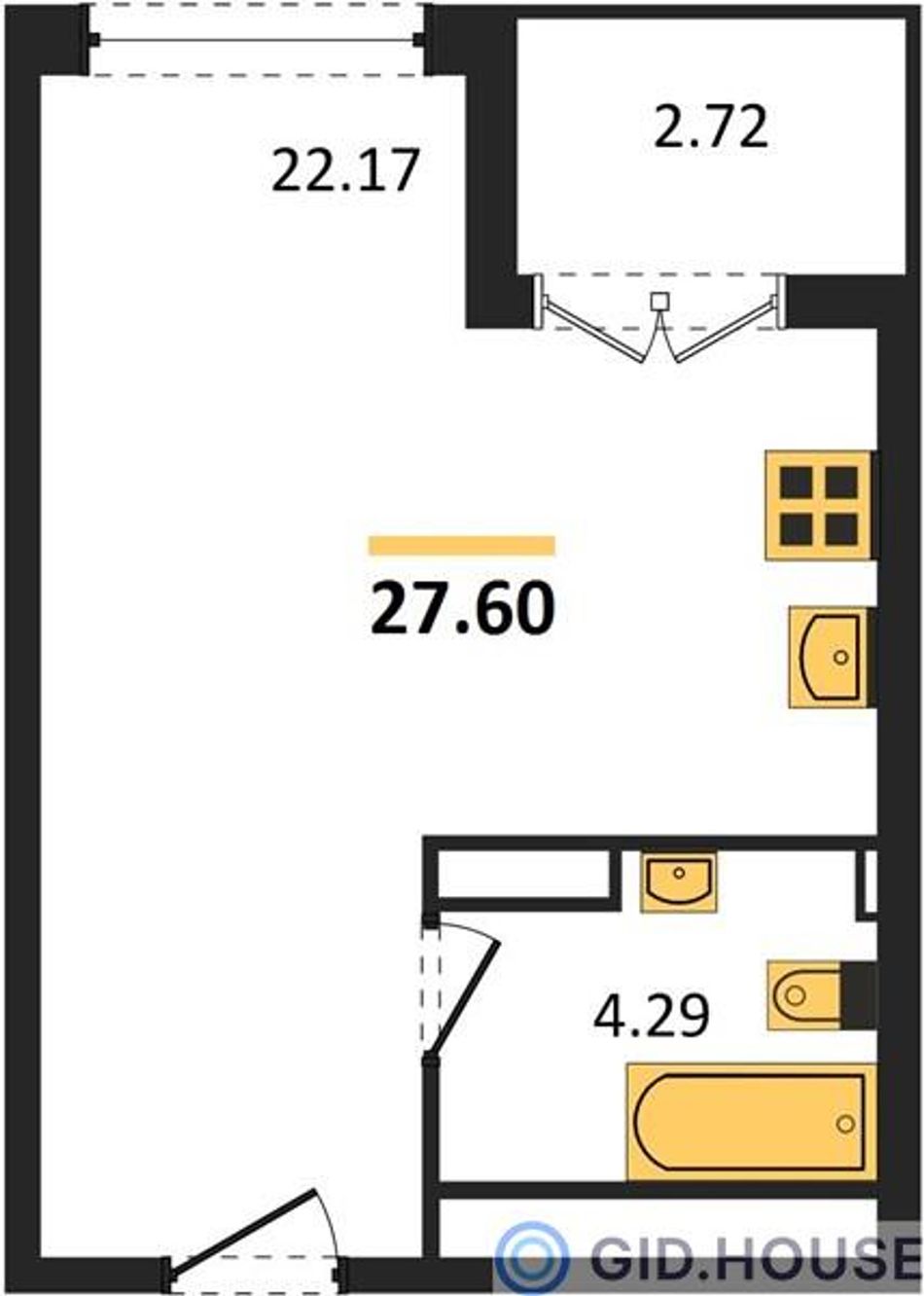 | Студия | 25 - 31 м² | 6,3 - 8,8 млн ₽ |