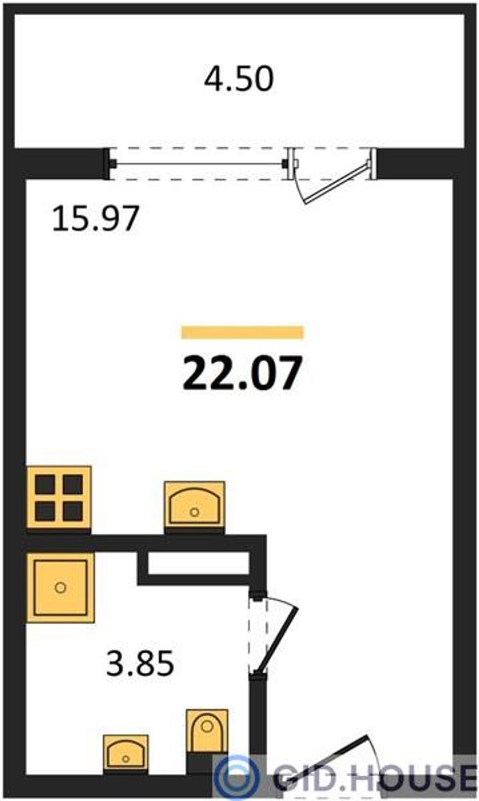 Общая площадь21,8 м²