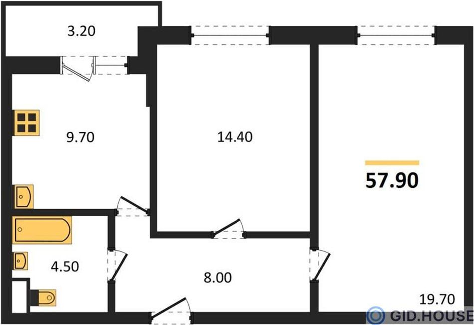 Общая площадь57,9 м²