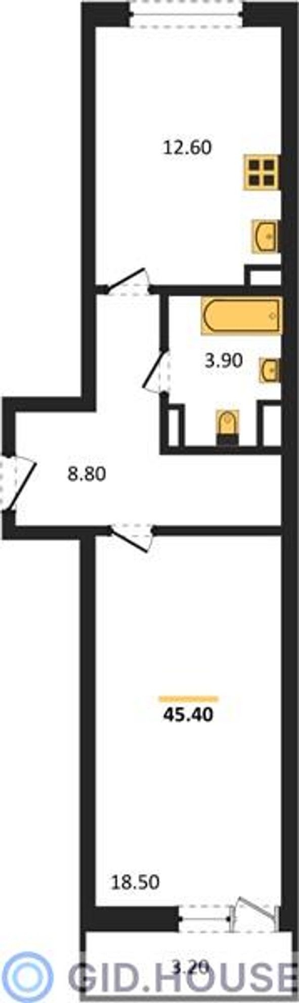 Общая площадь45,4 м²