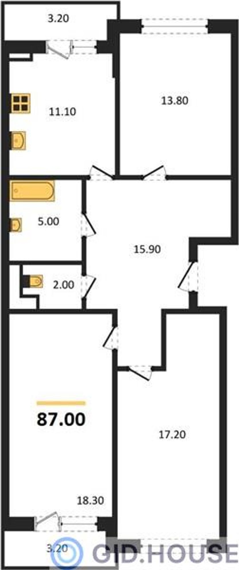 | 3-комн. | 76 - 87 м² | 10,6 - 13,7 млн ₽ |