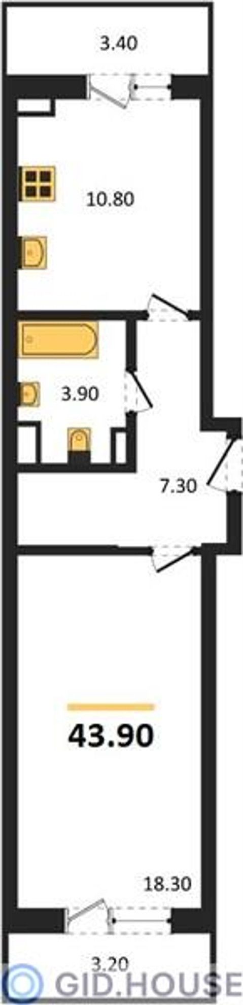Общая площадь43,9 м²