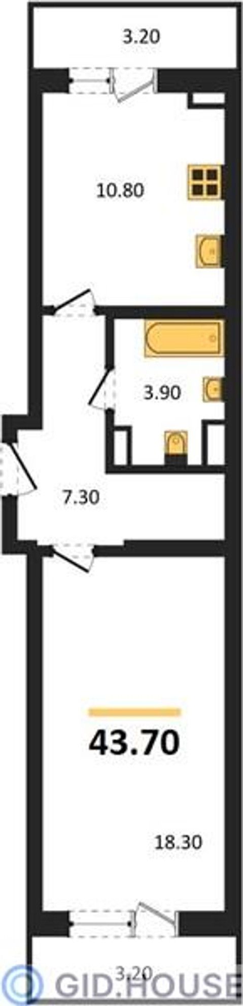 Общая площадь43,7 м²