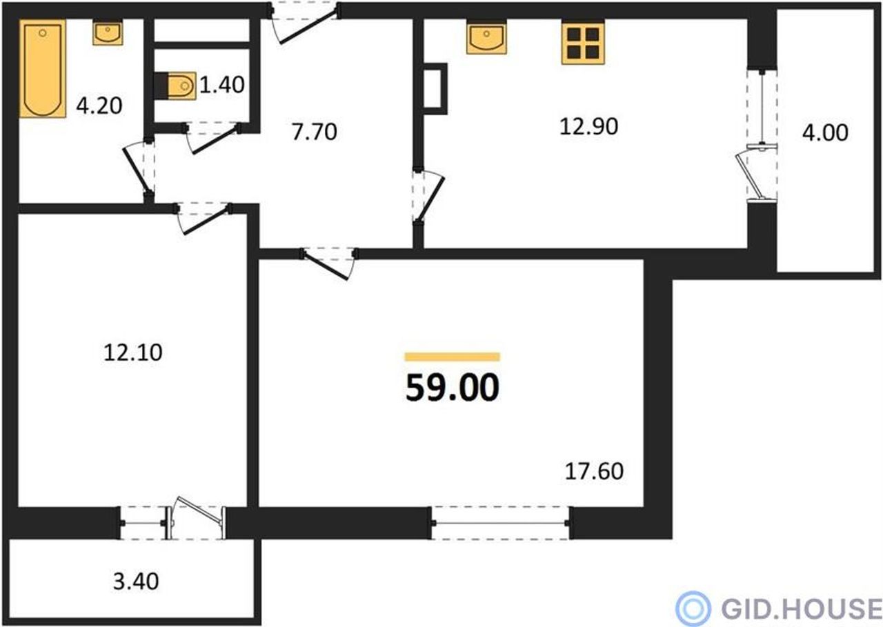 Общая площадь59 м²