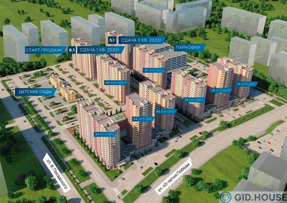 Квартиры комфорт-класса в 5-ми минутах от парка «Краснодар»! Благоустроенная территория, детские садики, большие подземные паркинги, пешеходный бульвар для прогулок.
