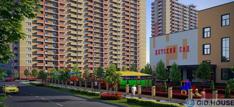 Динамичные фасады в природных оттенках, детский сад на территории комплекса, система «умный дом», большая торговая галерея.